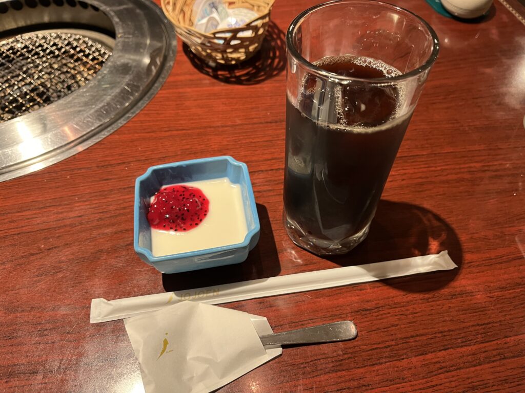 デザートの杏仁豆腐とアイスコーヒー。
