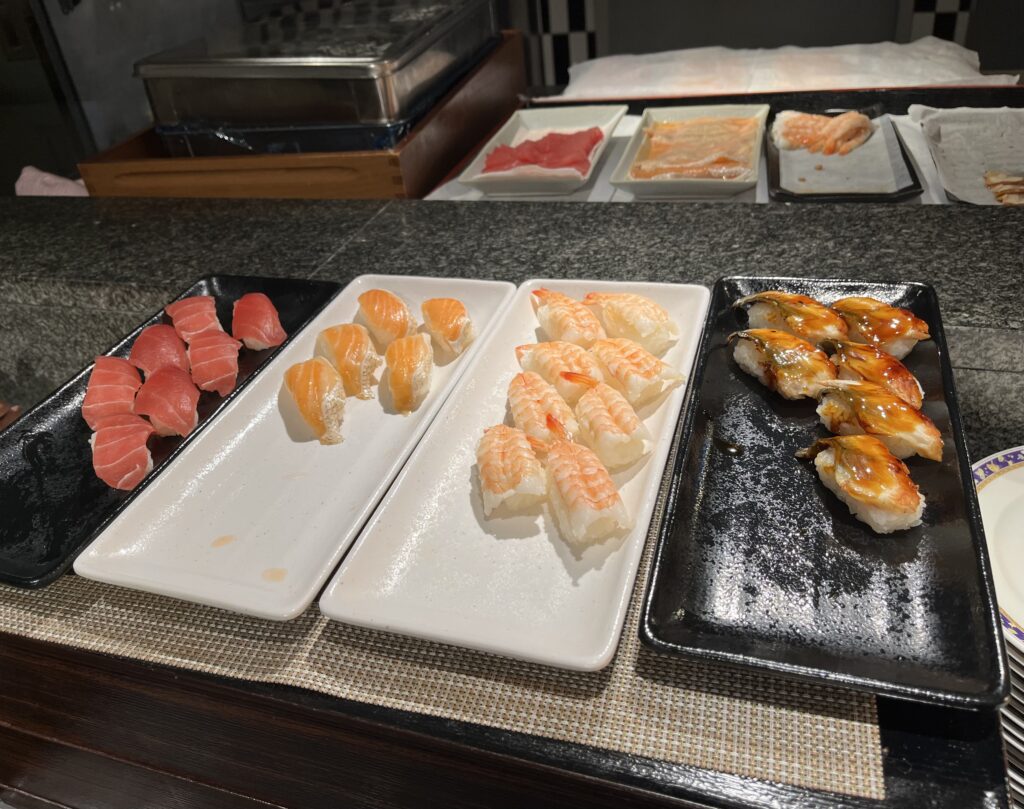 寿司(マグロ、サーモン、海老、うなぎ)