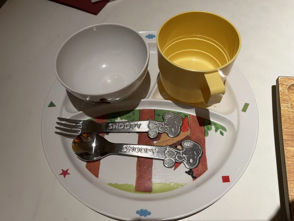 テーブルにはキッズ用のお皿やコップなどを