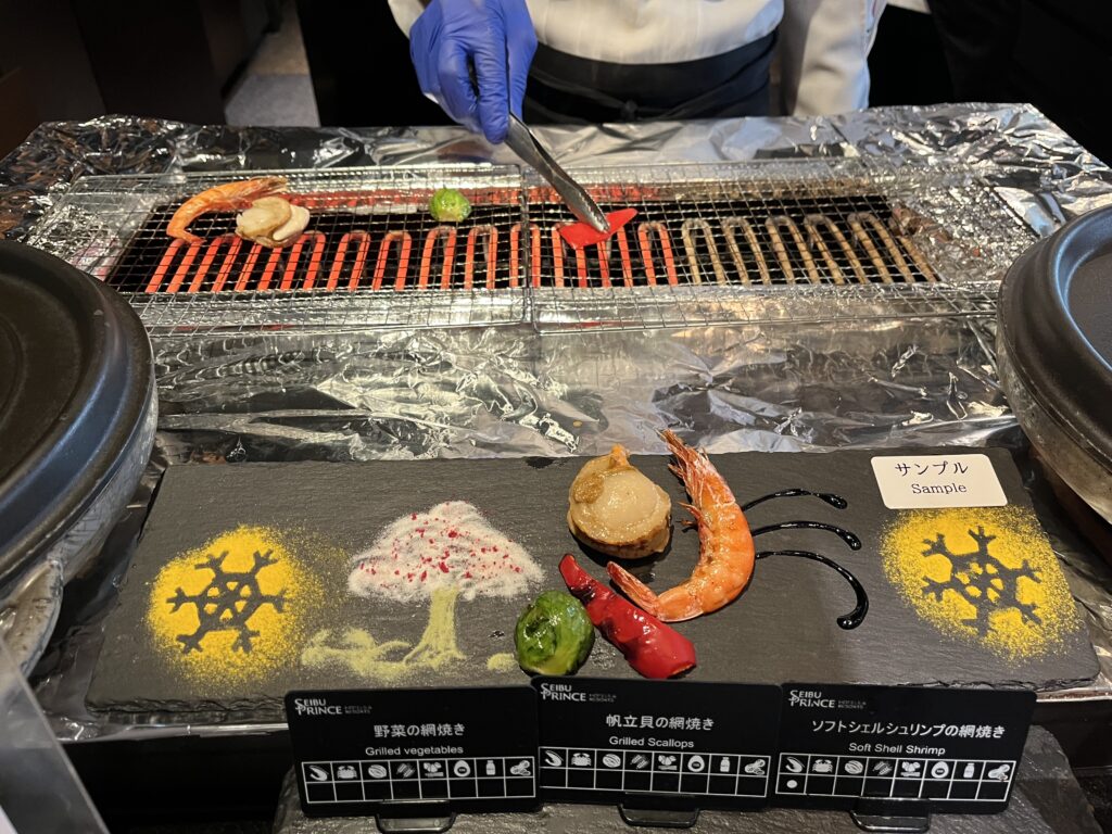 ソフトシェルシュリンプや帆立貝の網焼き、