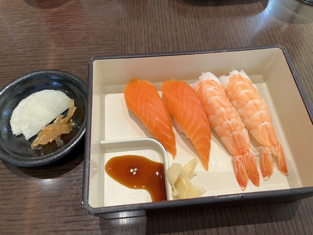 この日はサーモンとエビをいただくことに。