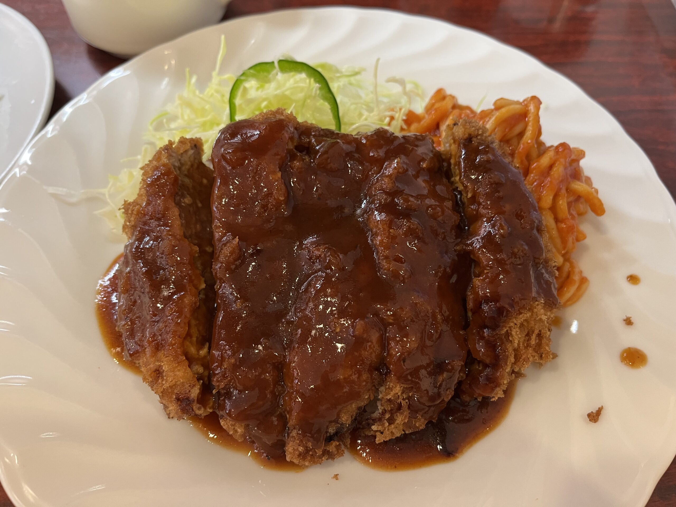 セットには、クタクタの玉ねぎがたっぷり入ったオニオンスープ、シャキシャキのキャベツ、そして懐かしさを感じるナポリタンもたっぷり。